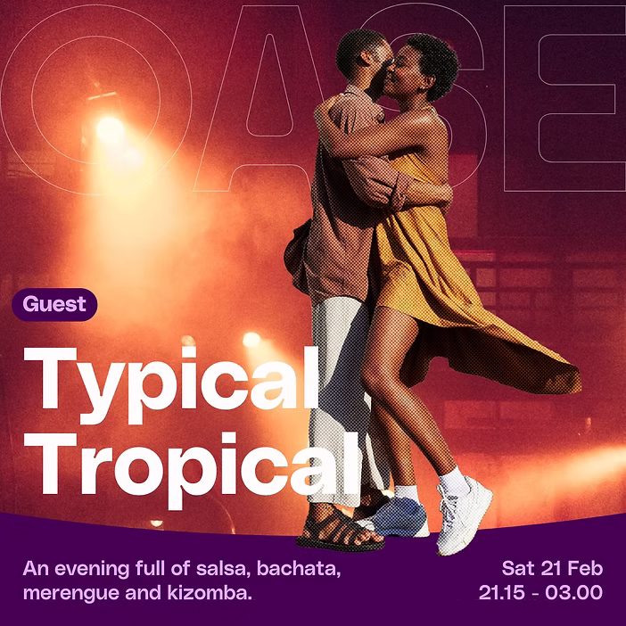 Typical Tropical is coming back to OASE for a third edition full of tropical warmth, rhythm and passion to the dance floor. Winter makes way for Latin vibes as salsa and bachata take over the night.